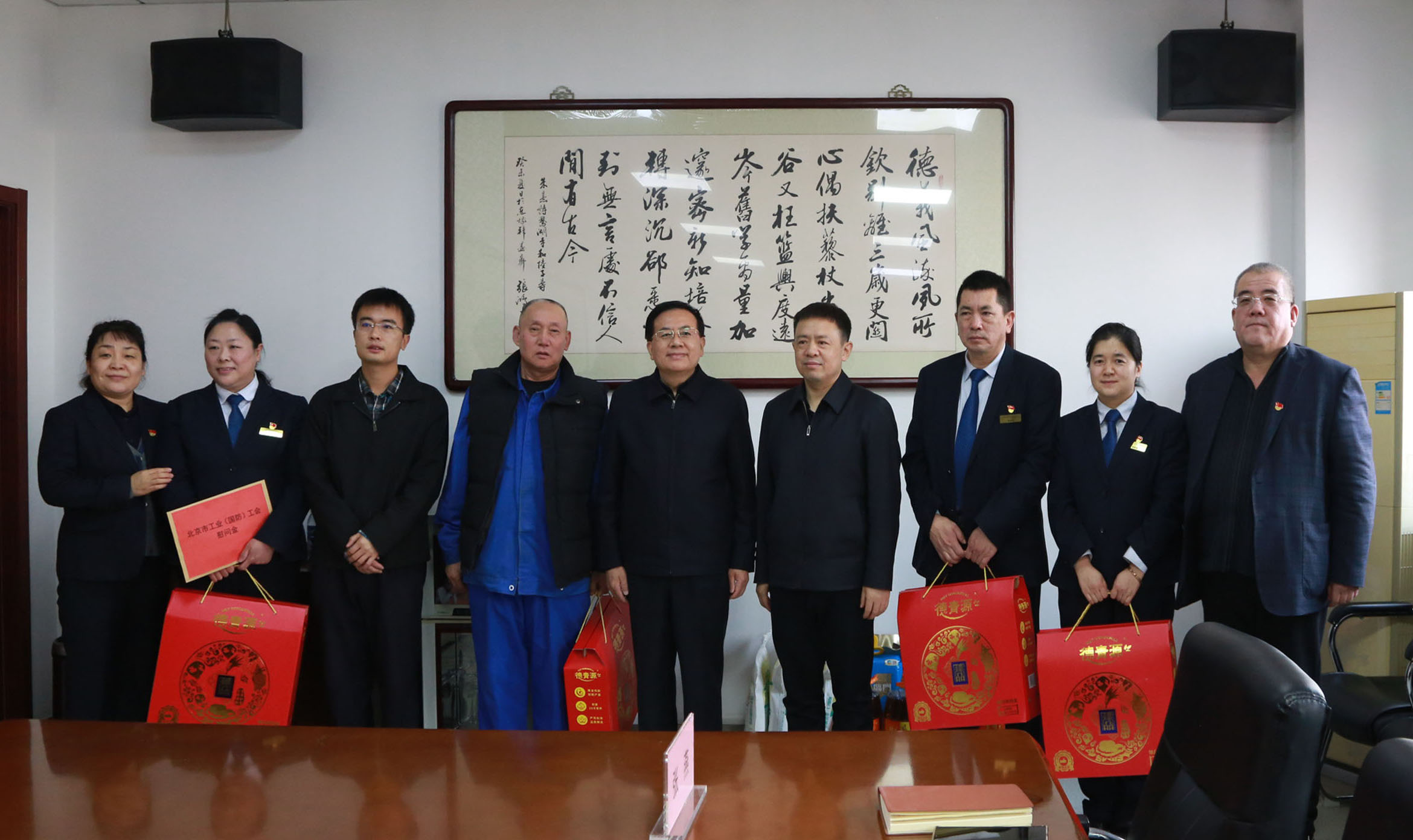 1月19日,北京市总工会工业(国防)工会主席周玉忠一行来到玻璃集团红桥文创园走访慰问劳动模范集体、一线职工,带来市总工业(国防)工会的关怀和问候,送上节日的祝福。色情网 公司党委常委、纪委书记袁新民陪同慰问。