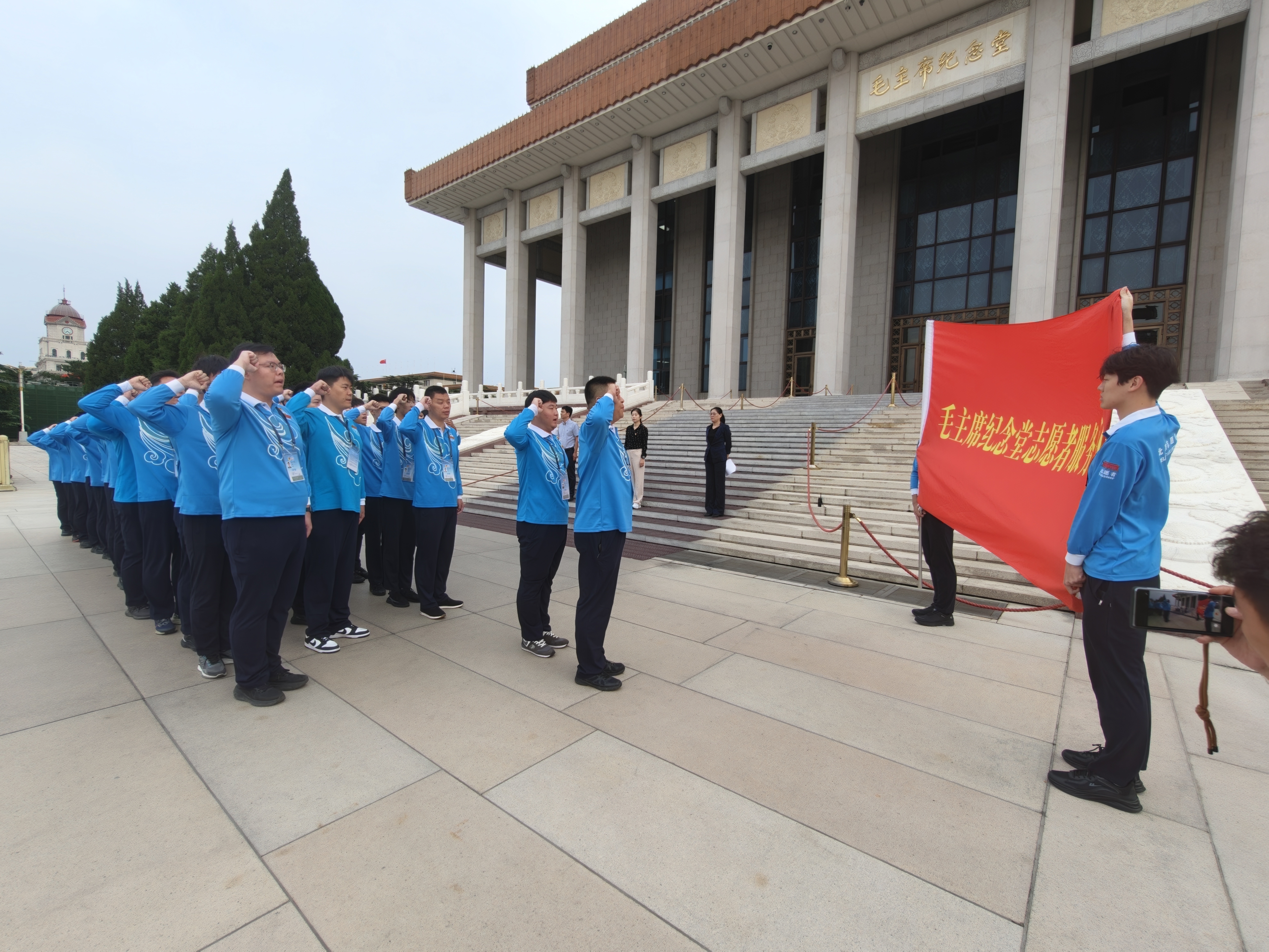 来自北京轻工技师学院的23名上岗志愿者集体庄严宣誓,志愿者们在“我宣誓,自愿成为一名光荣的北京志愿者……”的铿锵誓言中开启奉献篇章,接过毛主席纪念堂志愿服务接力棒,展现首都新时代的志愿者风貌。
